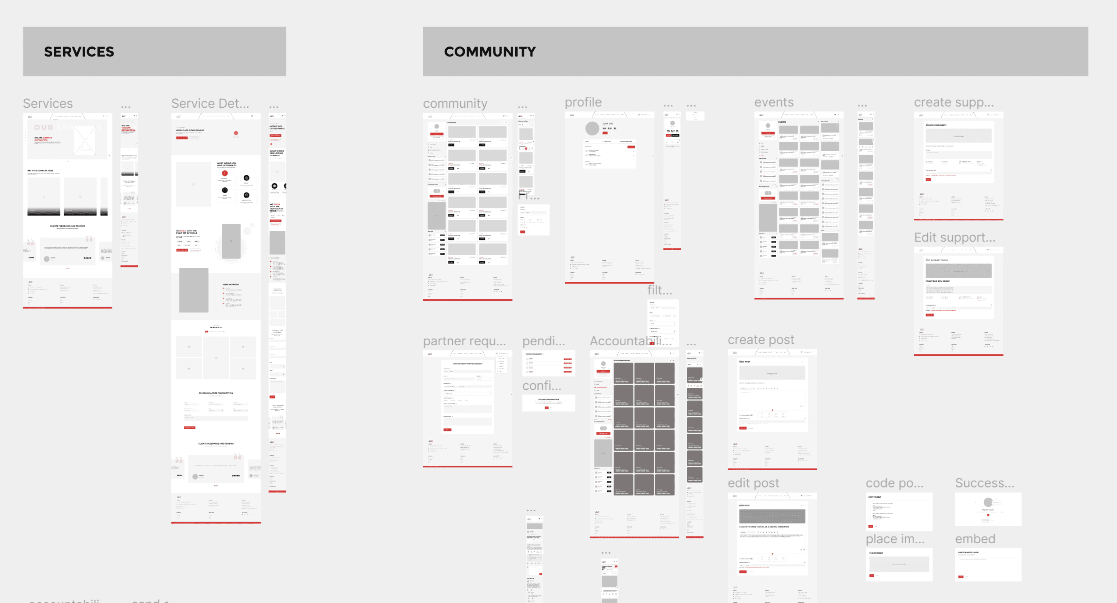 After identifying the core functionalities of the website, we created style guides which included the colours, typography, button states, iconography, cards, text fields etc used for the design. It’s a little extensive but on a basic level, these are a few of them.
