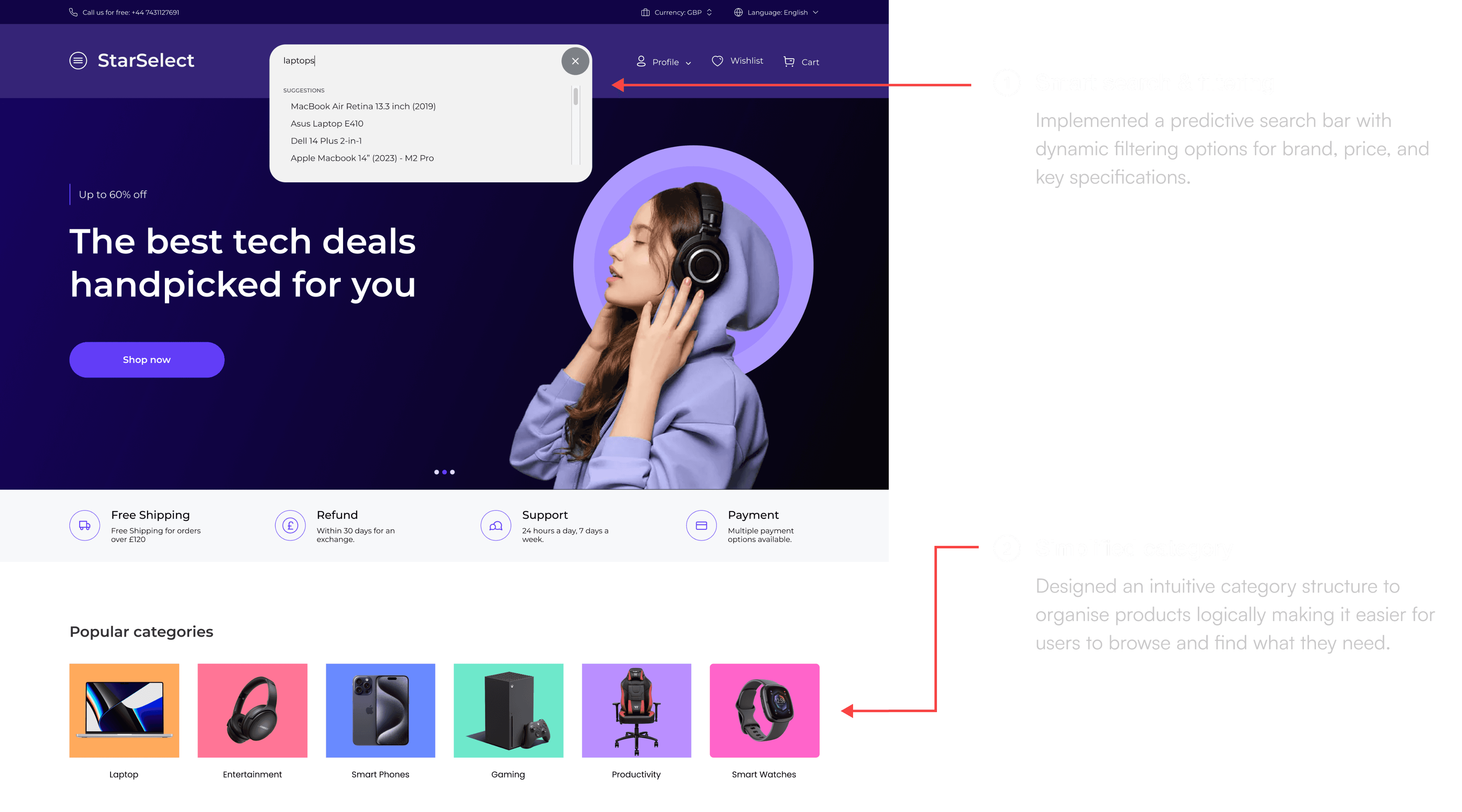 How I redefined product discovery, built user trust, and streamlined the checkout process to create a seamless experience for tech shoppers