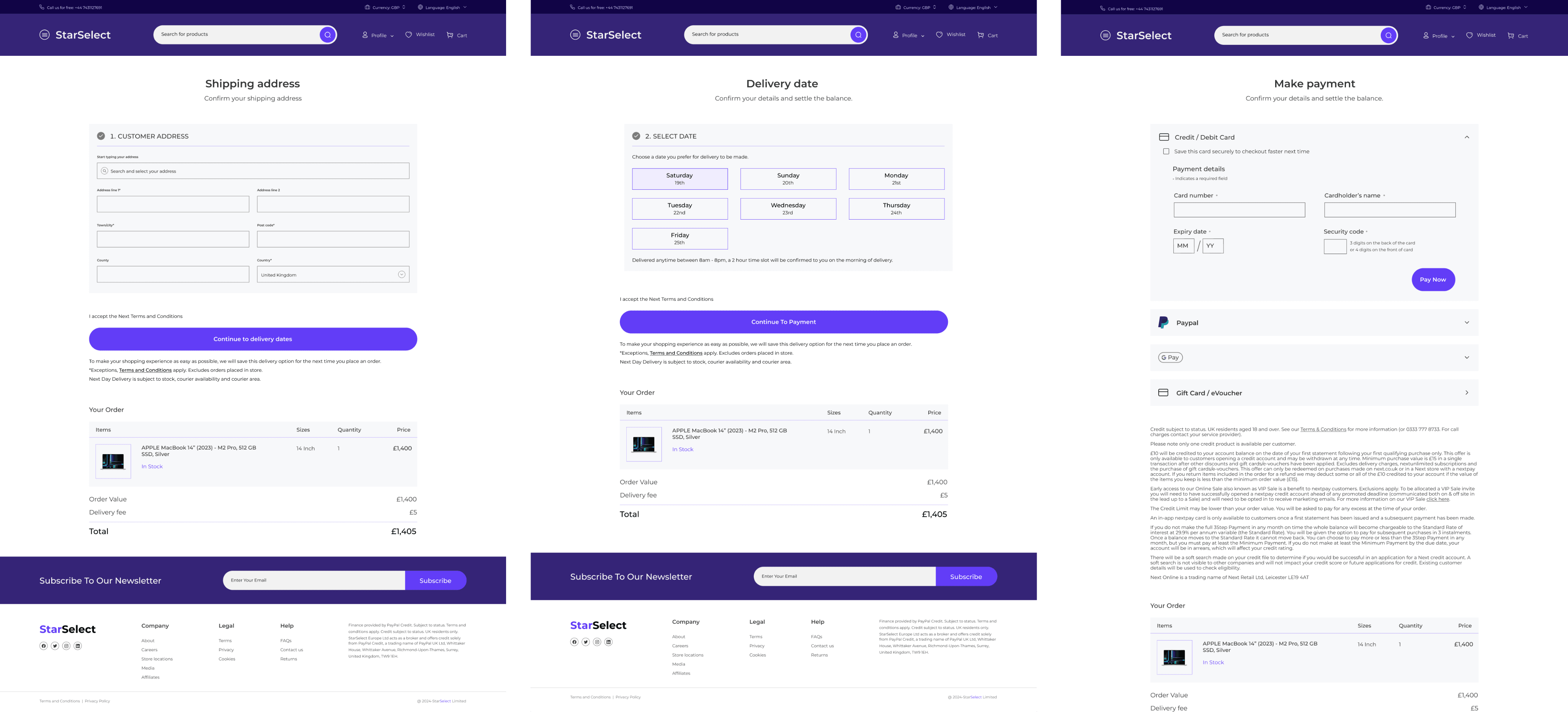 Combined shipping, and payment selection into a single page for efficiency.