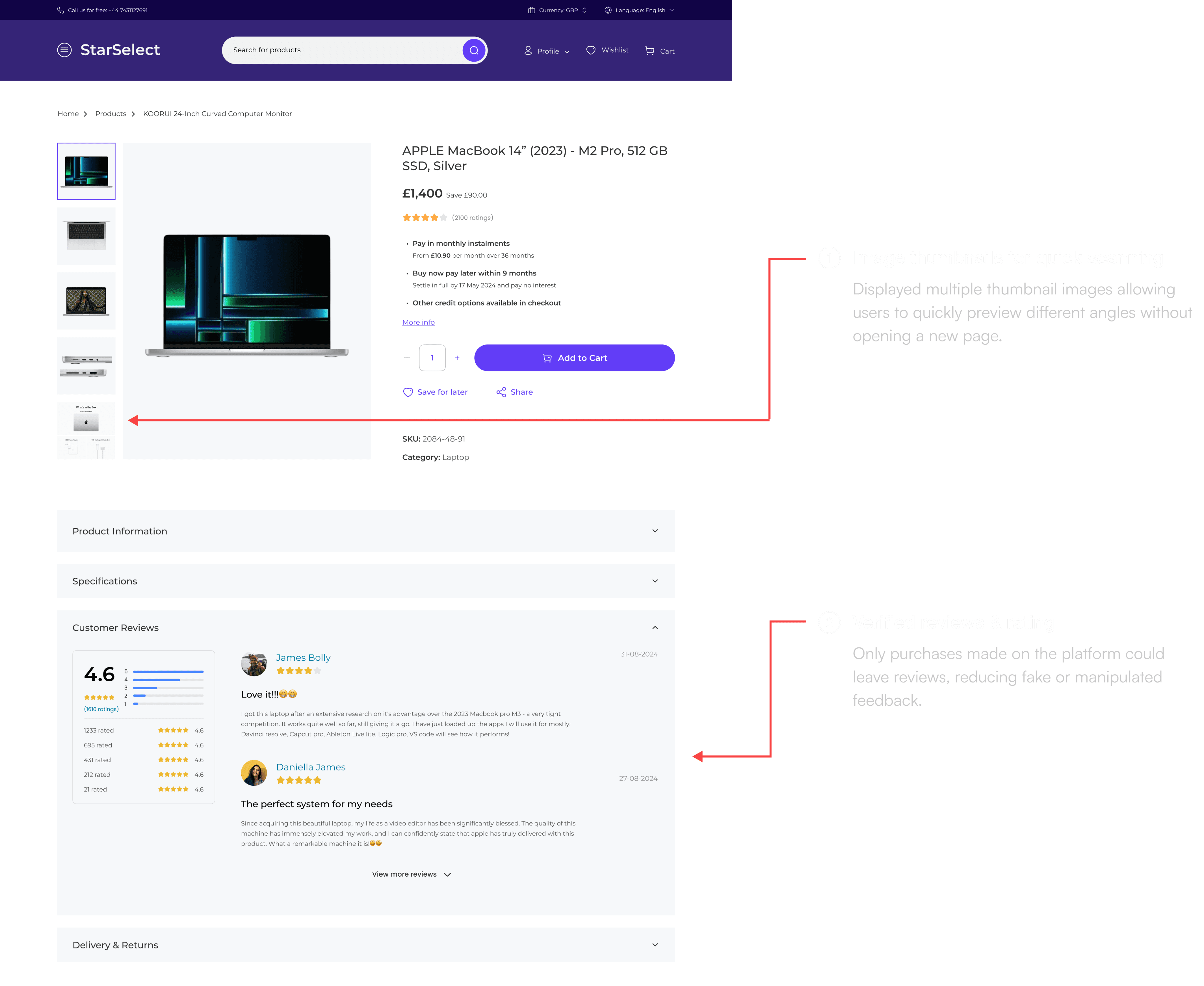 Multiple product images and thumbnails for better decision-making.