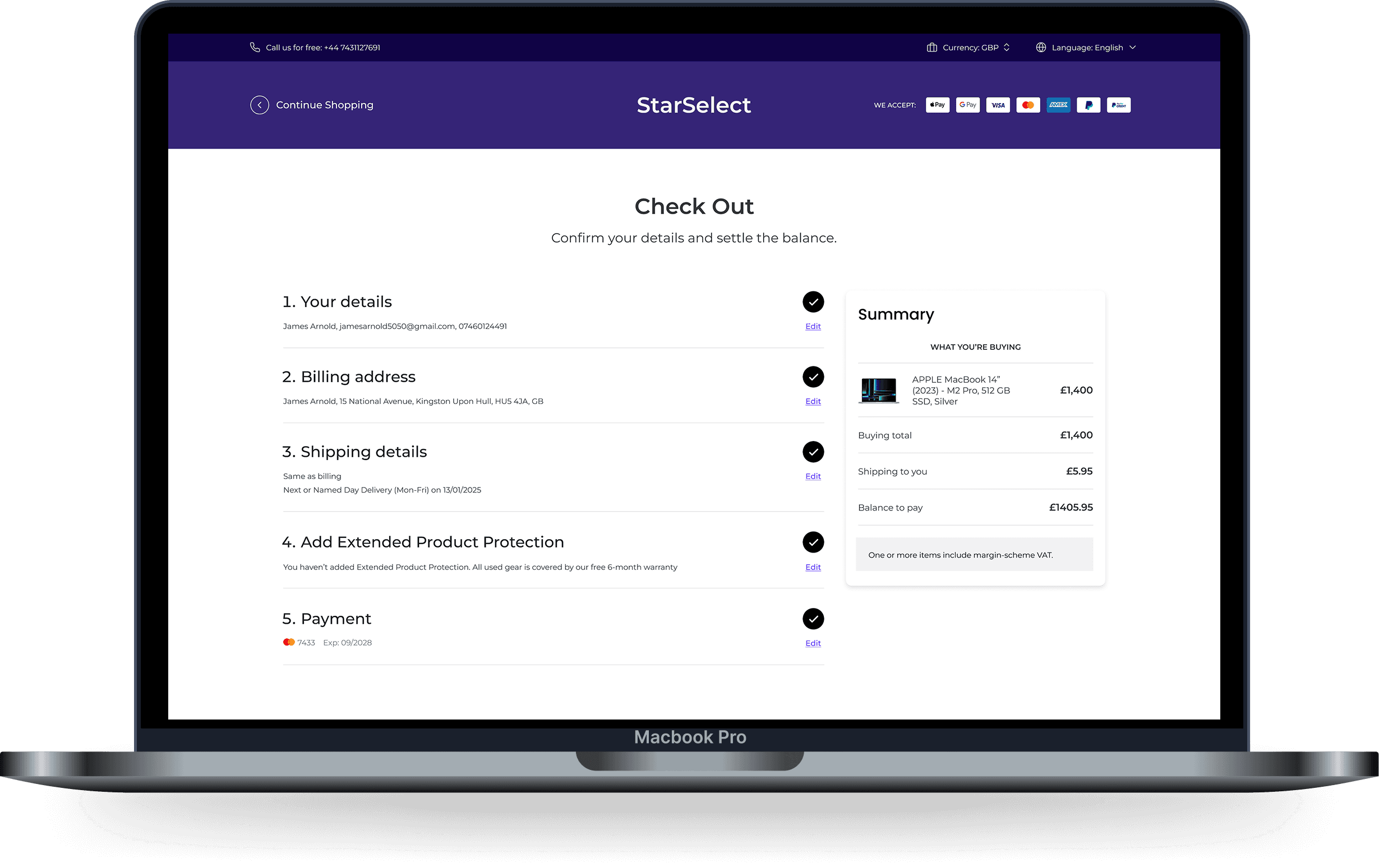 Paypal & Google pay included as payment options